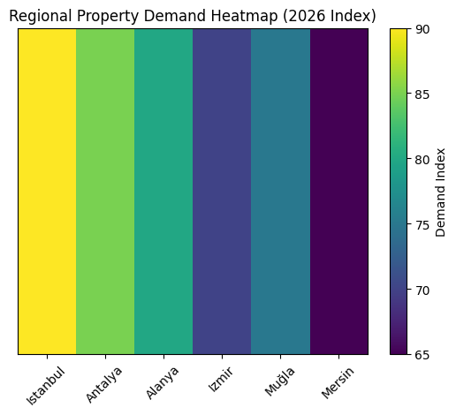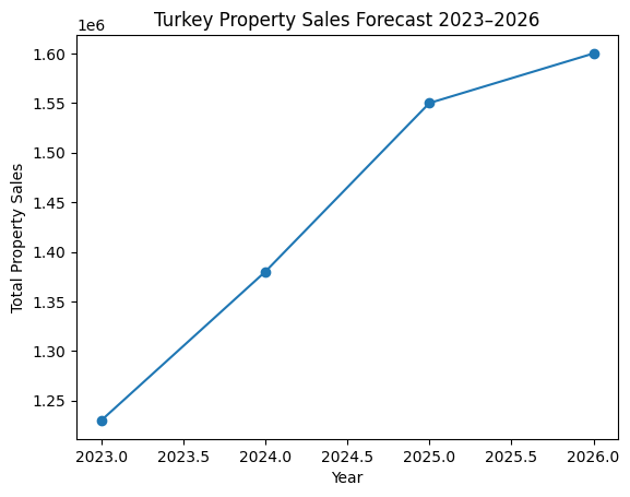 • Turkey Property Sales Forecast 2023–2026 (Line Chart) • Regional Demand Heatmap (Map Graphic) • Foreign Buyer Share by Nationality (Pie Chart) • Antalya vs Alanya Investment Comparison (Visual Table)