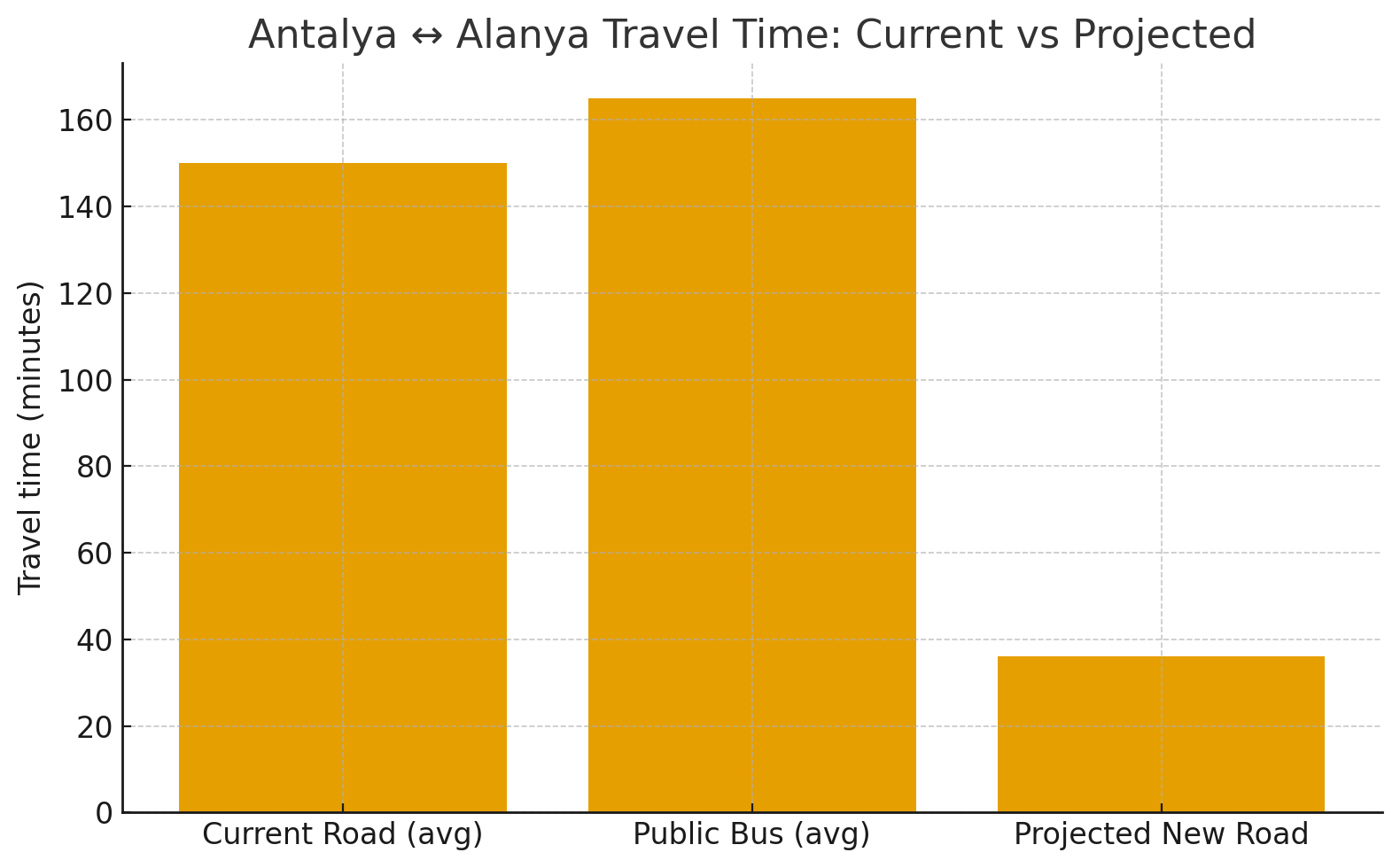 The current 125 km journey from Antalya Airport to Alanya typically takes: